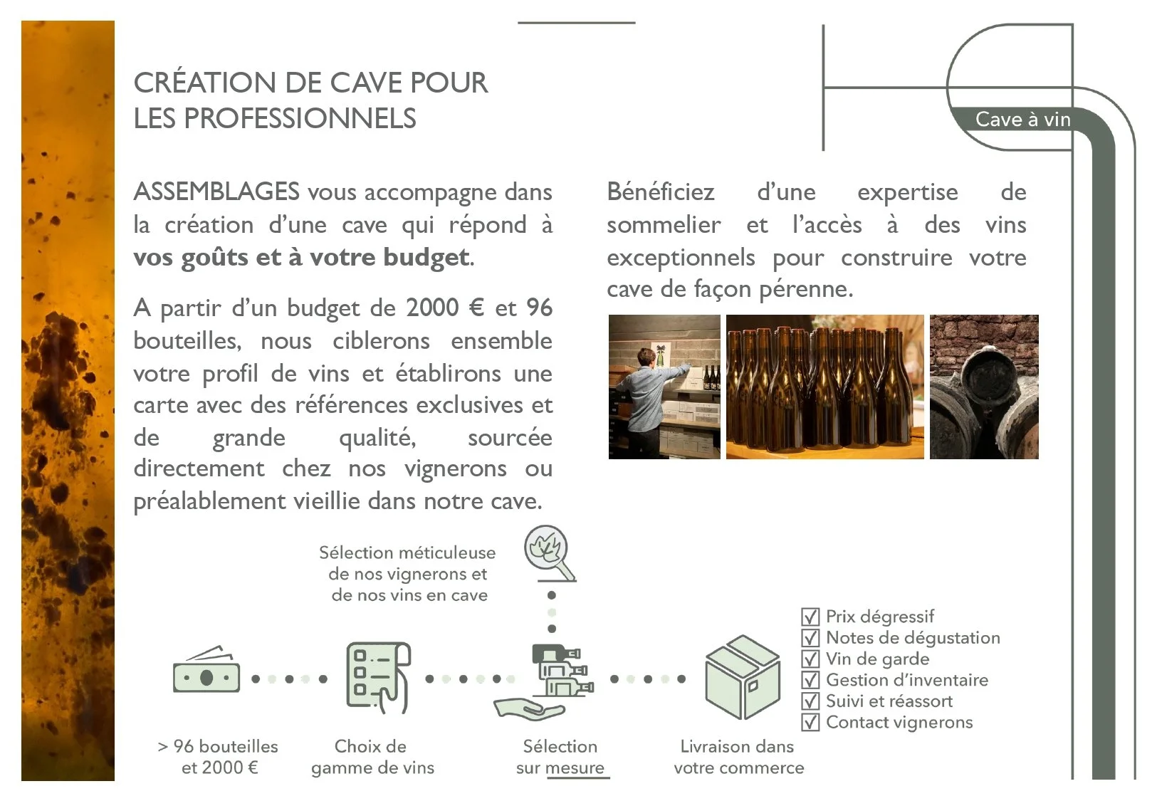 Chez ASSEMBLAGES, nous vous aidons à créer votre cave sur mesure grâce à un choix de vins exceptionnels, préalablement vieillis dans notre cave.